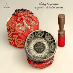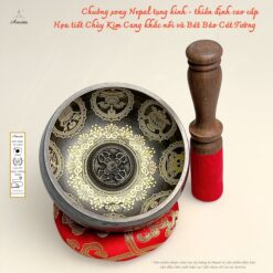 [Amrita] Bộ mõ + chuông xoay Nepal thủ công cao cấp Họa Tiết Hoa Sen – CXNP46