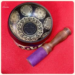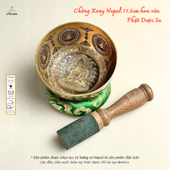 [ Amrita ] Bộ Chuông xoay Nepal Hoa văn Phật Dược Sư 12.7cm – mõ tụng kinh- bộ chuông mõ- CXNP12