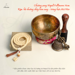 CXNP101 – Chuông xoay Nepal Fullmoon 16cm Kèm bộ chuông chày kim cang – tràng hạt Mã Não