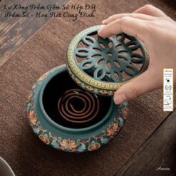 [Amrita] Lư Xông Trầm Gốm Sứ Hộp Đốt Trầm Sứ – Hoạ Tiết Cung Đình – CXNP175