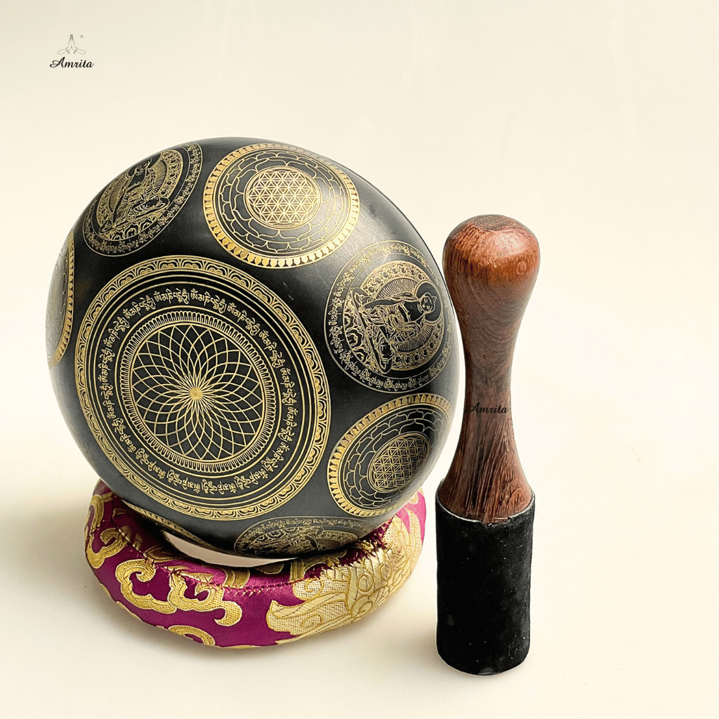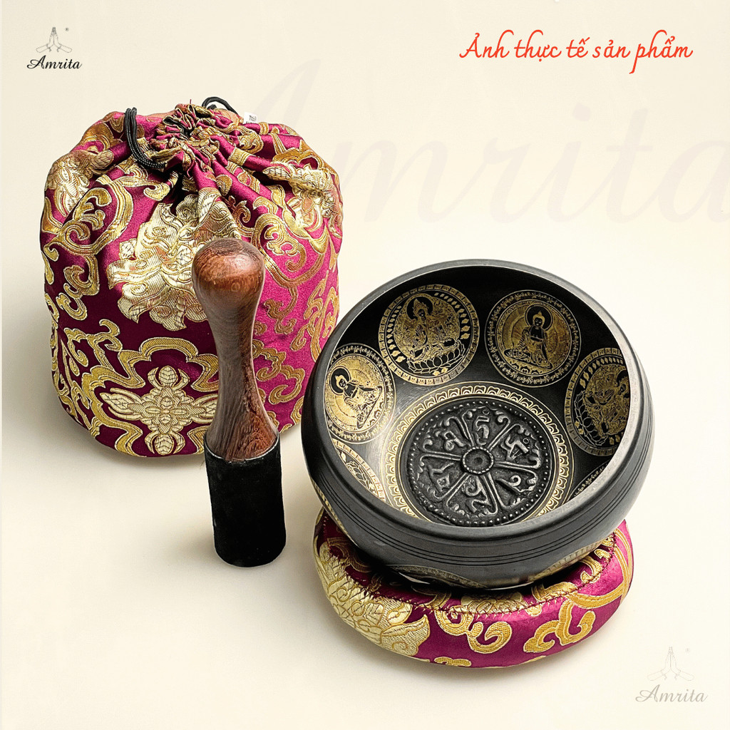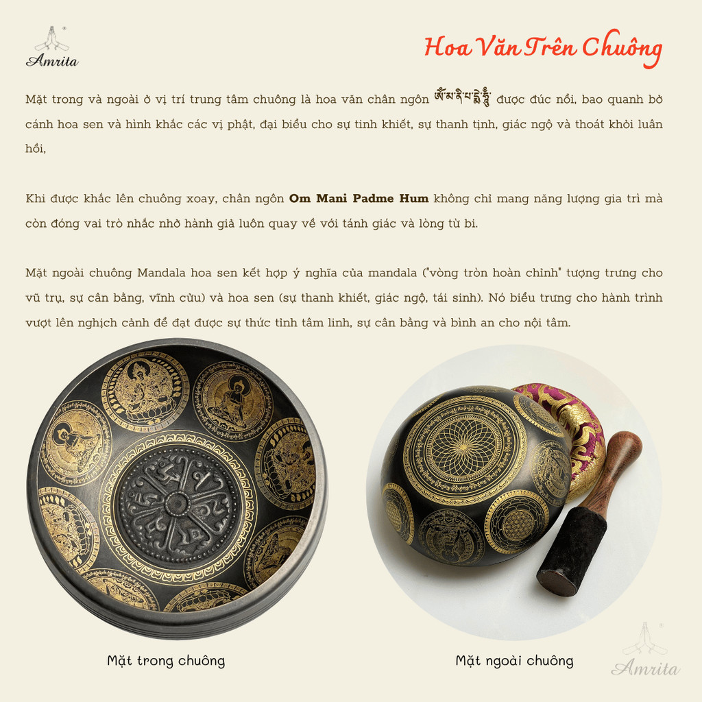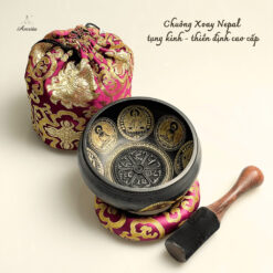 Bộ Chuông Xoay Nepal Cao Cấp Kèm Túi Đúc Họa Tiết Nổi Lục Tự Minh Chú