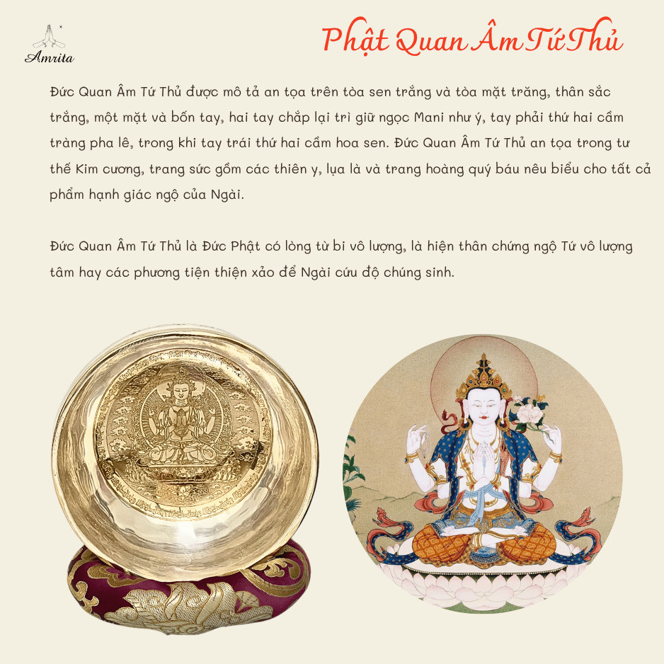 Đức Quan Âm Tứ Thủ là Đức Phật có lòng từ bi vô lượng, là hiện thân chứng ngộ Tứ vô lượng tâm hay các phương tiện thiện xảo để Ngài cứu độ chúng sinh.