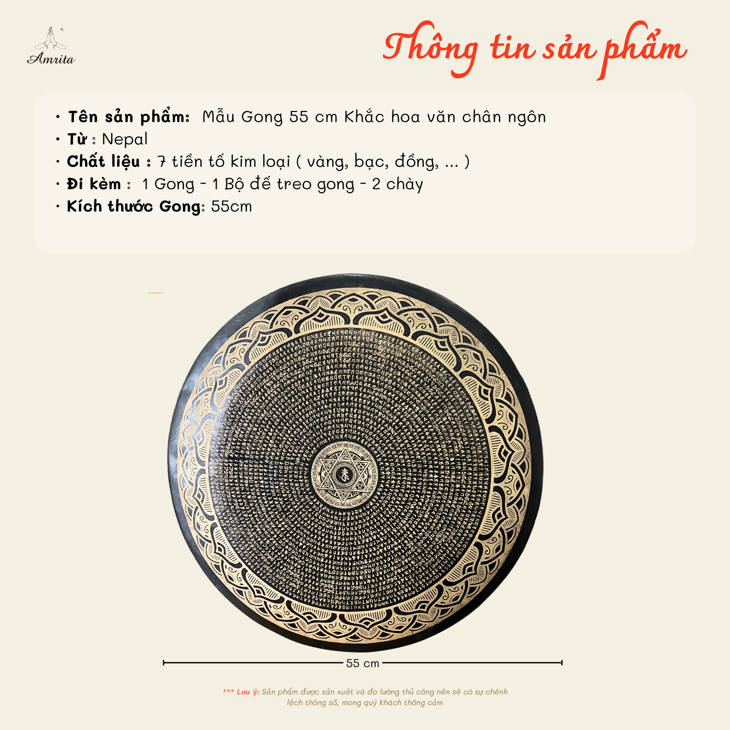 · Tên sản phẩm: Mẫu Gong 55 cm Khắc hoa văn chân ngôn