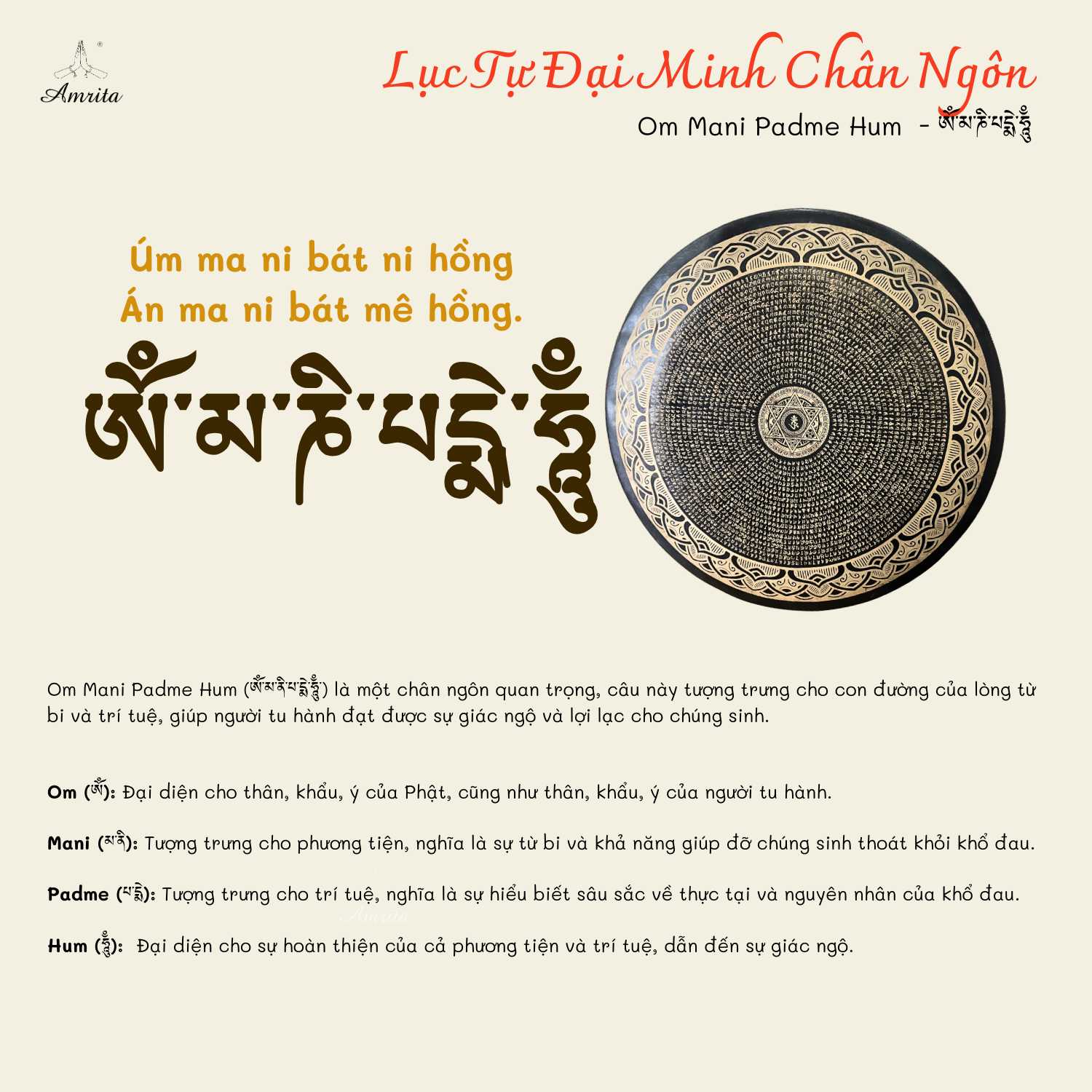 Om Mani Padme Hum (ཨོཾ་མ་ནི་པ་དྨེ་ཧཱུྃ་) là một chân ngôn quan trọng, câu này tượng trưng cho con đường của lòng từ bi và trí tuệ, giúp người tu hành đạt được sự giác ngộ và lợi lạc cho chúng sinh.