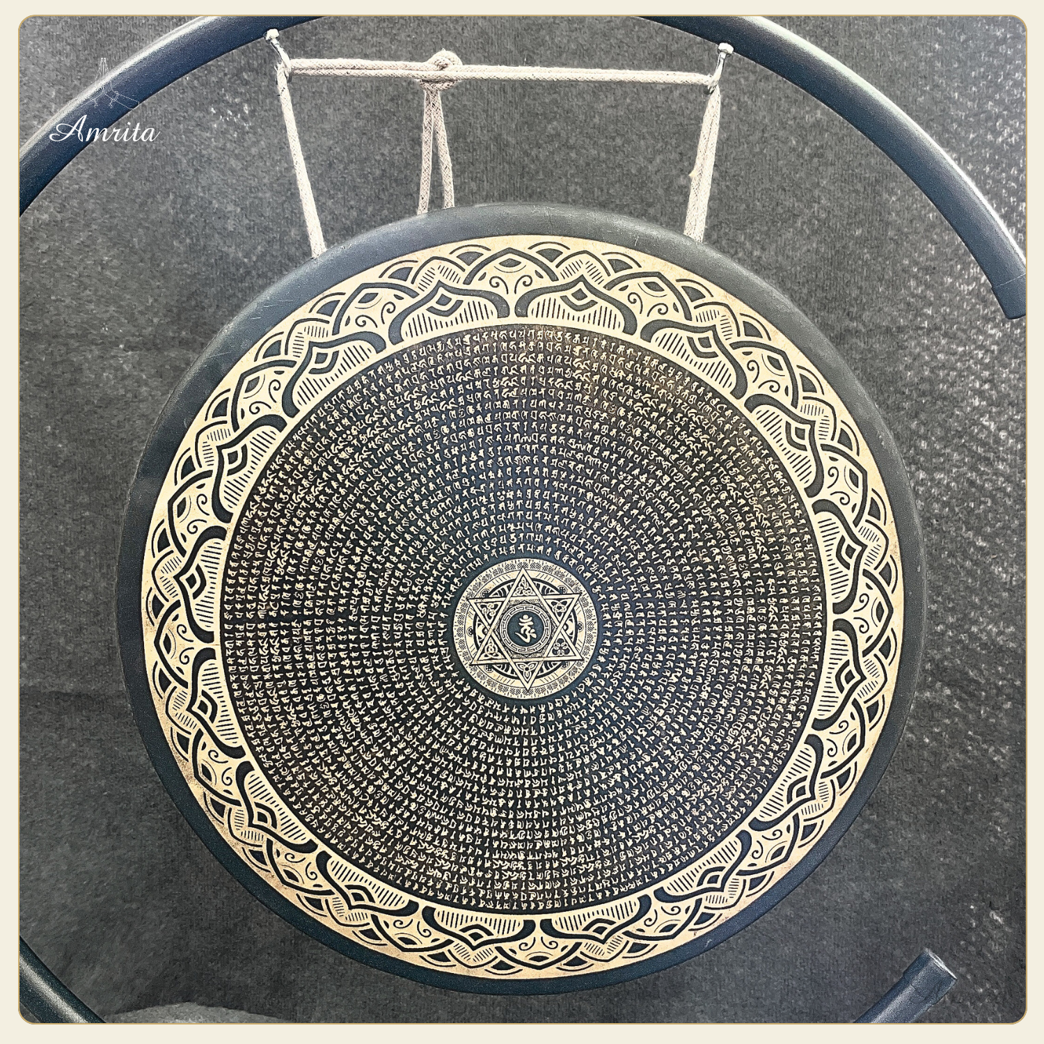 CXNP196 Mẫu Gong 55 cm Khắc hoa văn chân ngôn