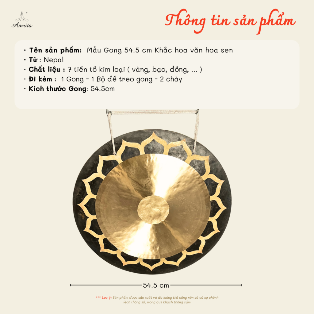 · Tên sản phẩm:  Mẫu Gong 54.5 cm Khắc hoa văn hoa sen