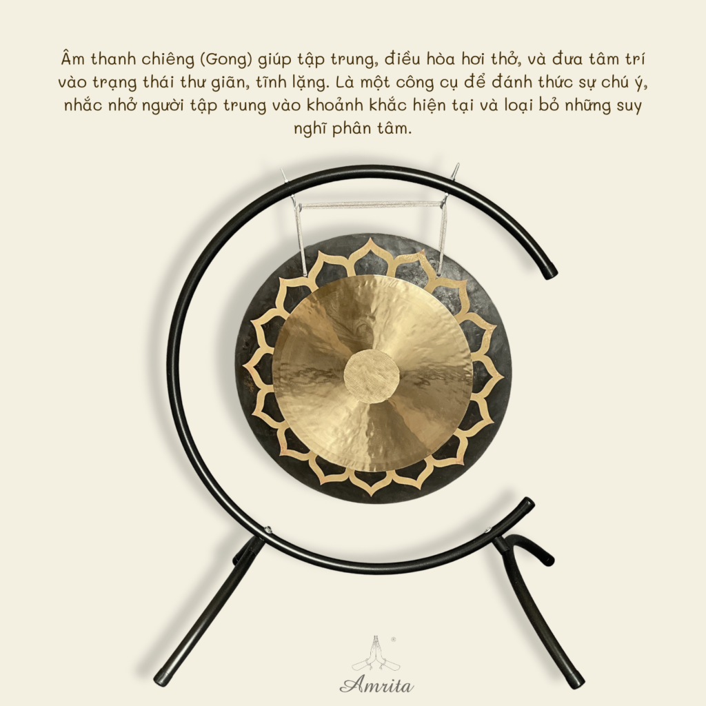 Âm thanh chiêng (Gong) giúp tập trung, điều hòa hơi thở, và đưa tâm trí vào trạng thái thư giãn, tĩnh lặng. Là một công cụ để đánh thức sự chú ý, nhắc nhở người tập trung vào khoảnh khắc hiện tại và loại bỏ những suy nghĩ phân tâm.