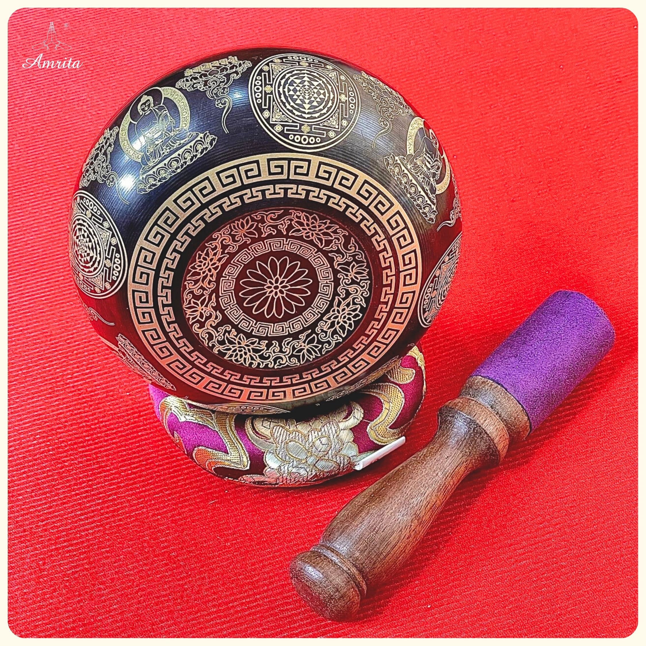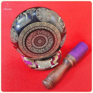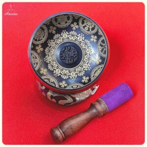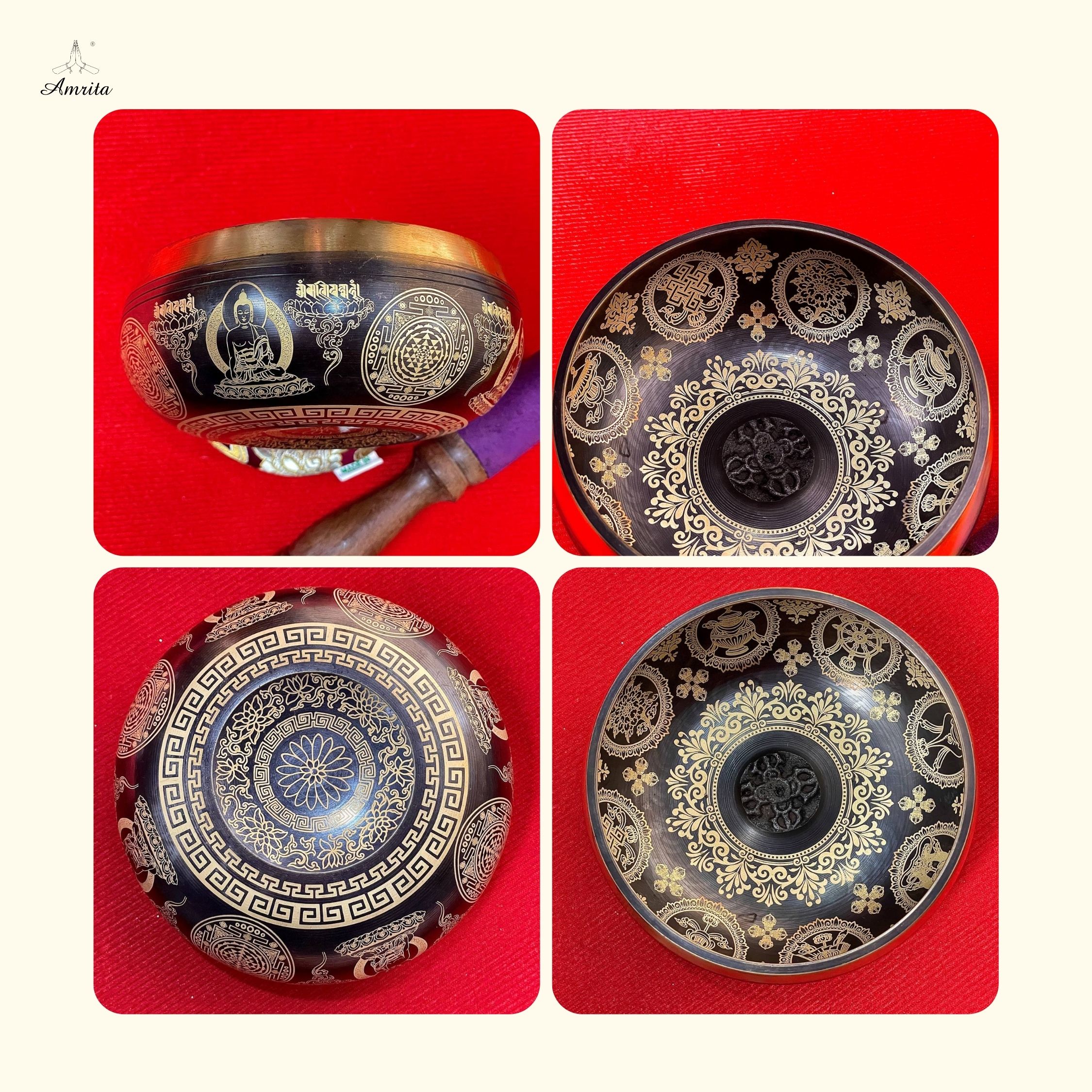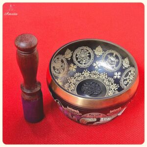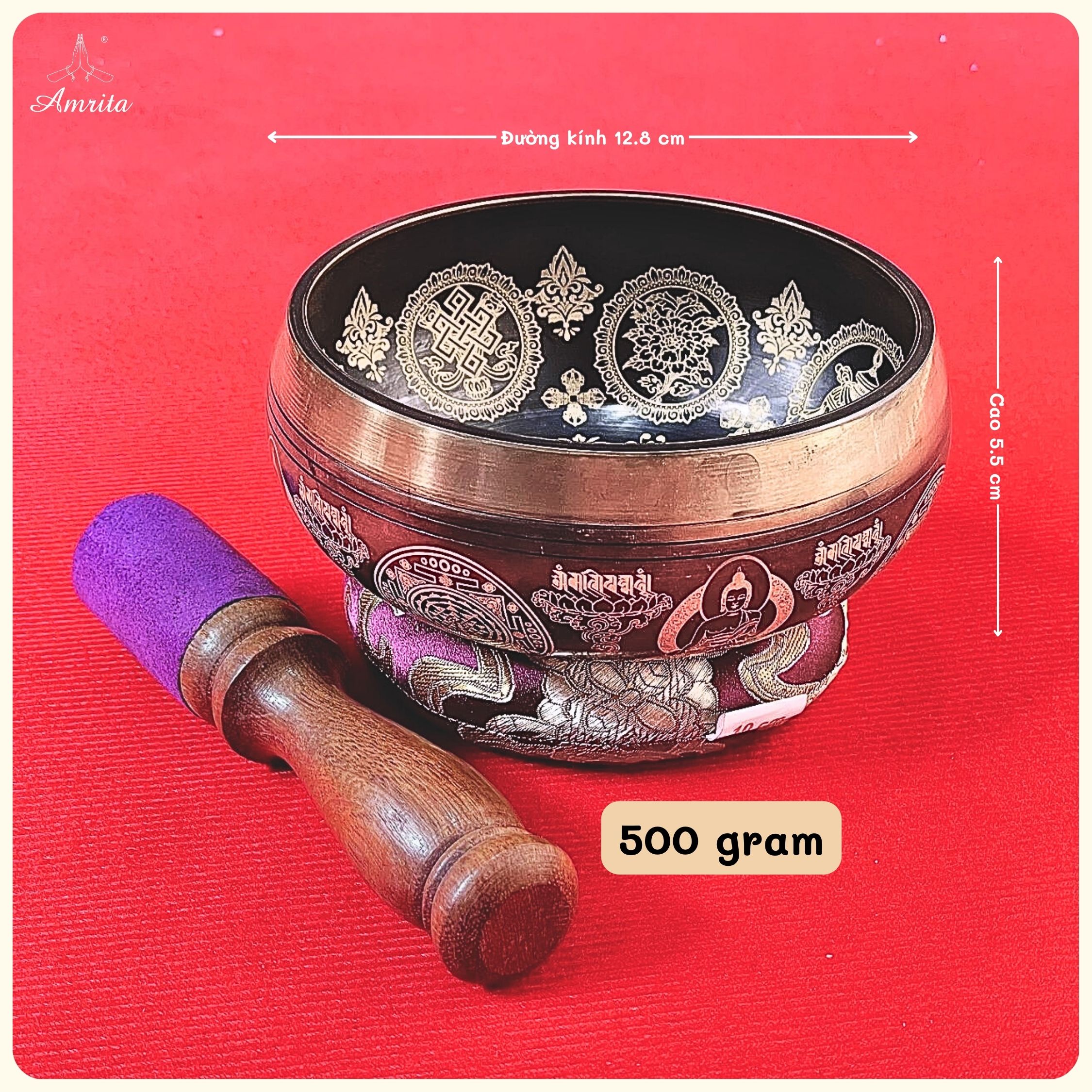 CXNP310 Chuông xoay Nepal 12.8cm hoa văn đúc nổi & bát bảo kiết tường