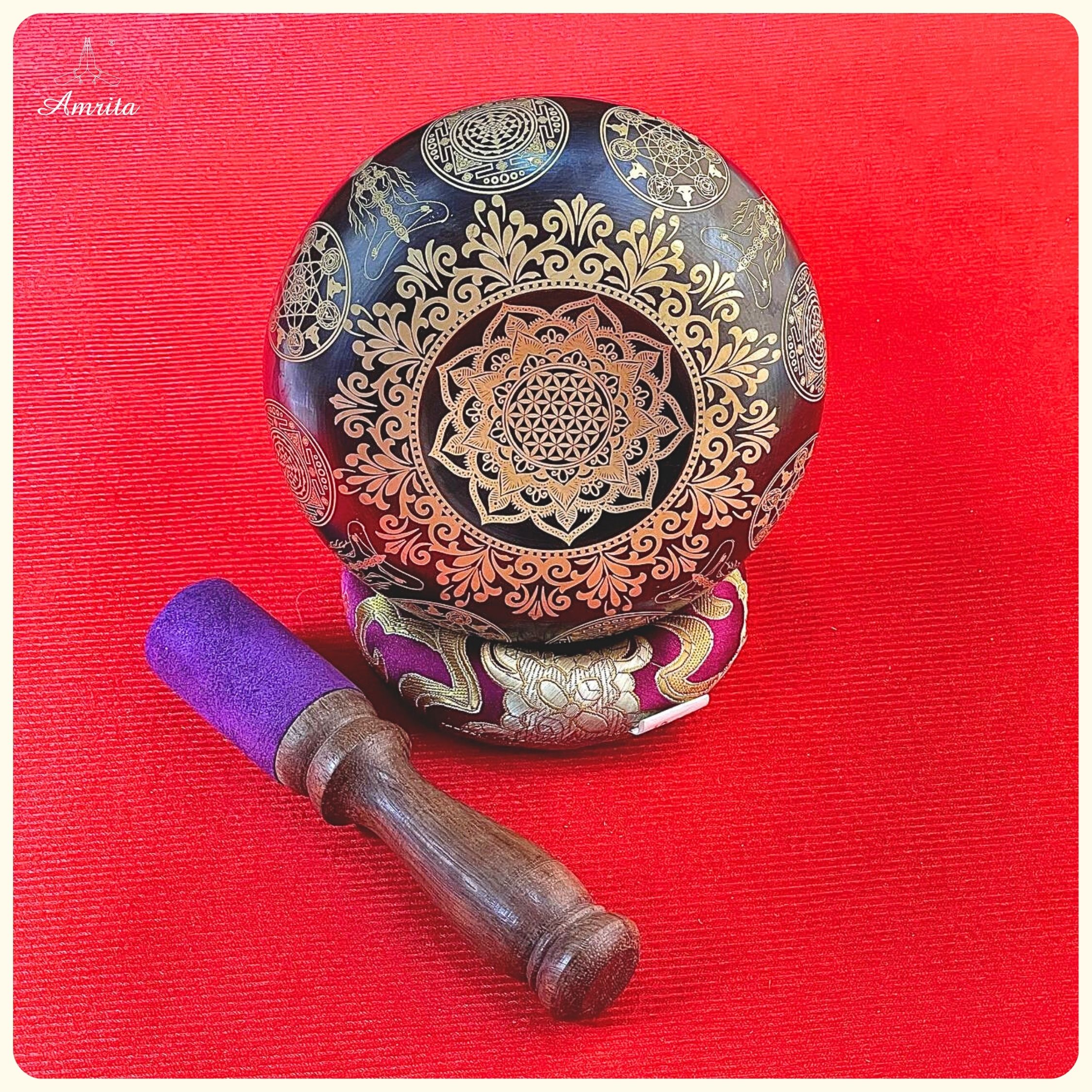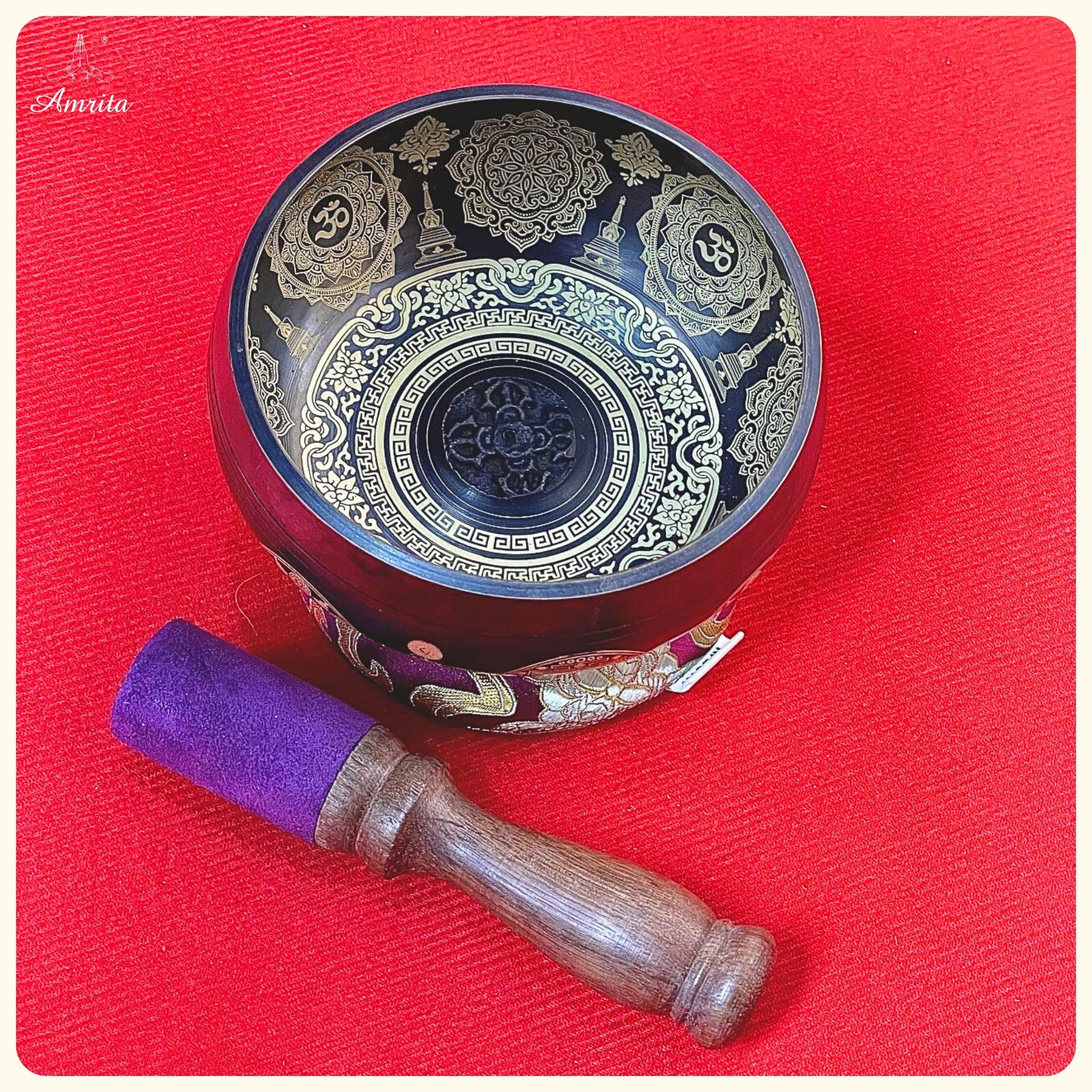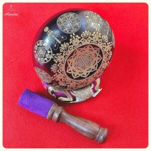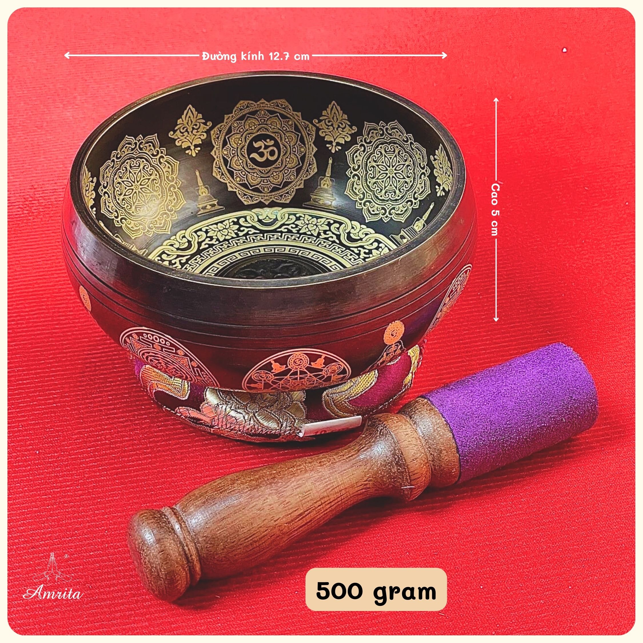 CXNP312 Chuông xoay Nepal 12.7cm hoa văn đúc nổi & Mandala chữ OM