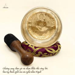 Các Mantra trên chuông được các nghệ nhân khắc tay hoàn toàn thủ công với các đường nét tinh xảo, tỉ mỉ. Bật lên ánh vàng sang trọng cao cấp