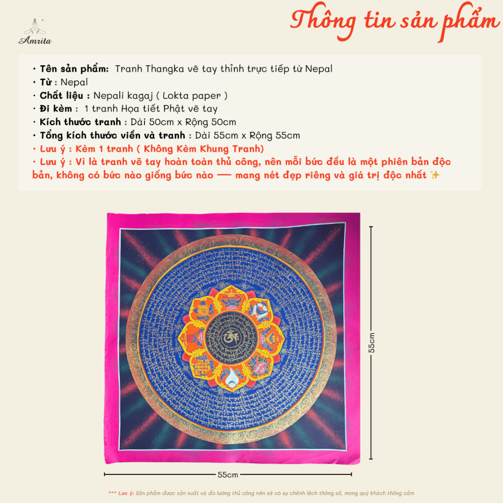 · Tên sản phẩm: Tranh Thangka vẽ tay thỉnh trực tiếp từ Nepal